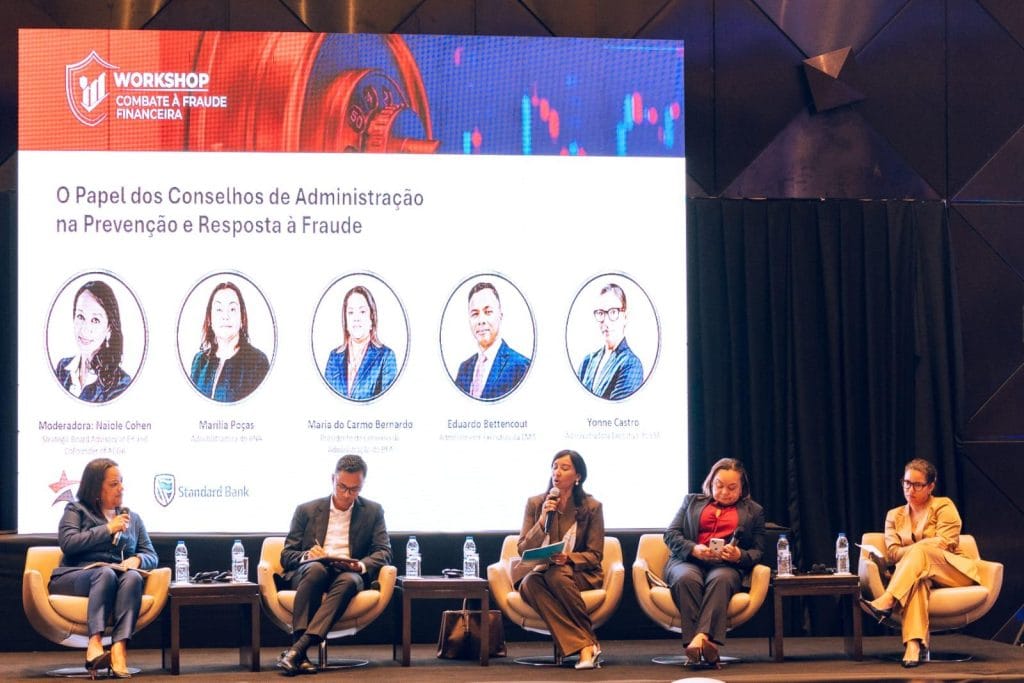 Num painel executivo dedicado ao papel dos Conselhos de Administração, participaram Marília Poças (BNA), Maria do Carmo Bernardo (BFA), Eduardo Bettencourt (EMIS) e Yonne de Castro (SBA), sob moderação de Naiole Cohen (EY Angola / ACGA).